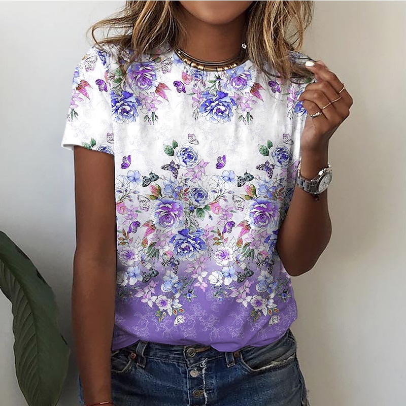 This Charming Graphic Butterfly Print Tee combines style and comfort with its unique design and vintage appeal. Perfect for everyday wear or weekend outings, this short sleeve t-shirt offers a flattering fit with a classic round neckline, available in versatile colors like black, pink, and purple. The eye-catching butterfly print adds a touch of whimsy to your wardrobe.